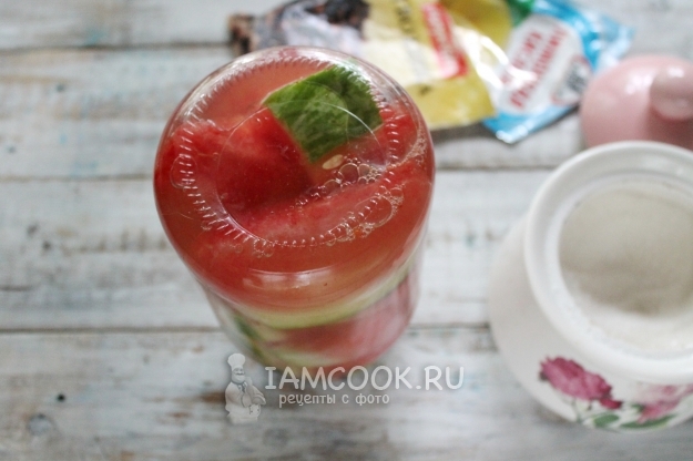 Маринованный арбуз с лимонной кислотой на зиму готов. Он останется хрустящим, кисло-сладким и очень вкусным.