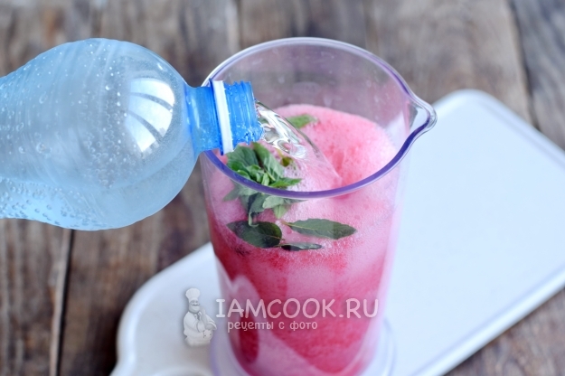 Содержимое стакана залейте холодной газированной водой, хорошо перемешайте.