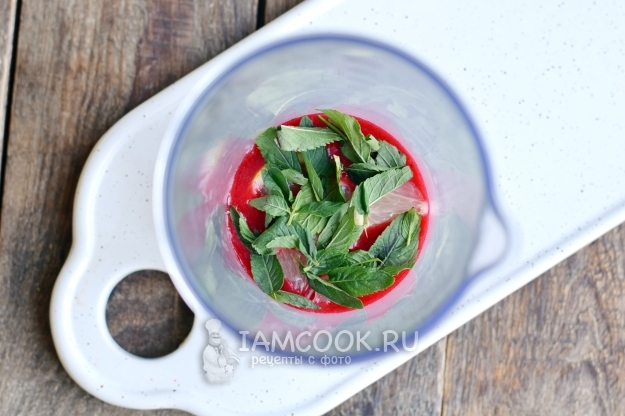 Листочки мяты отделите от веточек, хорошо вымойте, также закиньте в стакан, перемешайте.