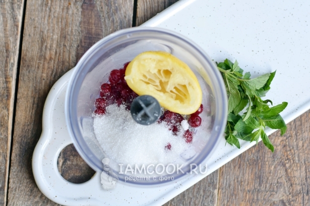 Всыпьте к смородине сахар, выдавите сок из лимона, предварительно удалив все косточки. Несколько долек оставьте для подачи. Сахар при желании можно заменить медом.