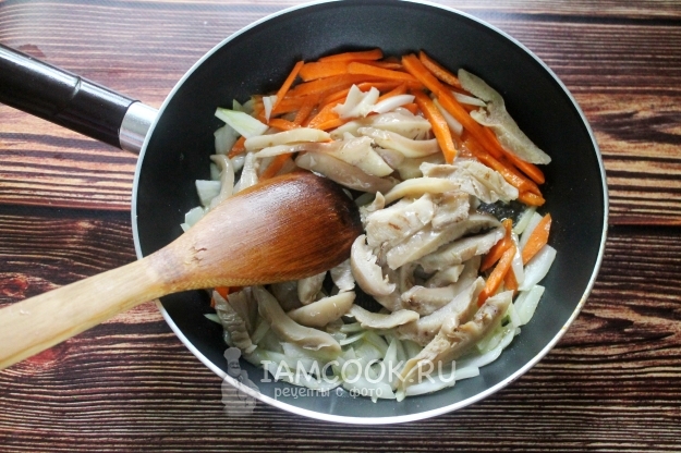 Добавьте сыроежки и продолжите обжарку-тушение до готовности грибов (еще минут 10).