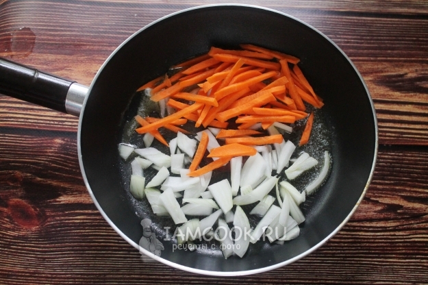 Добавьте морковь, влейте пару ложек бульона и припустите овощи.