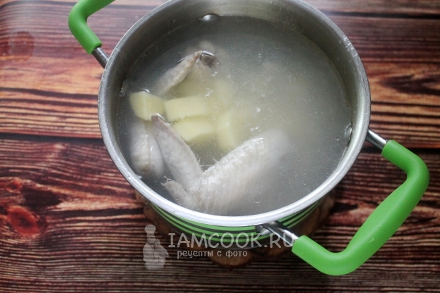 Поставьте вариться курицу, если выбираете вариант на бульоне.