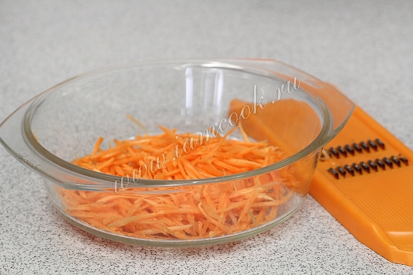 Остужаем, очищаем от пленки и нарезаем колечками.
