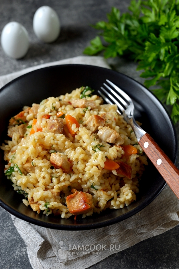 Простое в приготовлении, вкусное и сытное блюдо из свинины с рисом и овощами может стать отличным семейным обедом или ужином. Подавать его очень вкусно с ложкой нежирной сметаны или с натуральным йогуртом. Отличным дополнением к нему может стать салат из помидоров с огурцами и луком.