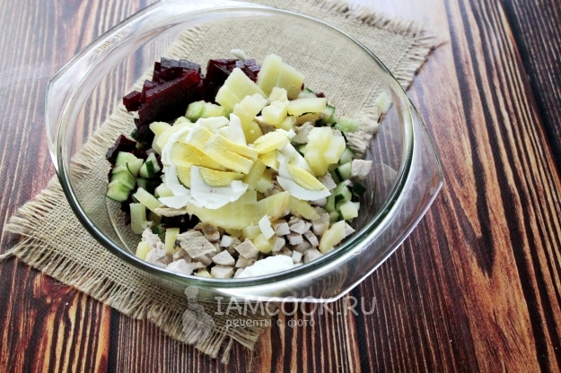 Приготовьте продукты по списку. Овощи удобно сварить заранее и охладить.