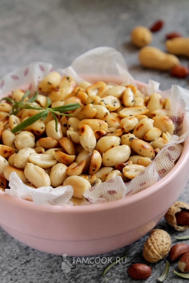 Остужаем и подаем жареный арахис с морской солью, чесноком и пряными травами к столу.