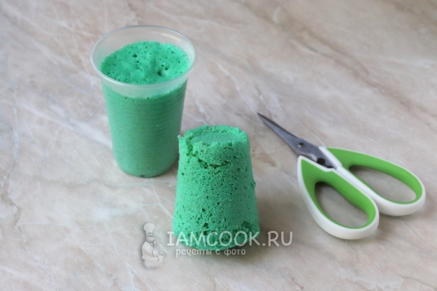После чего аккуратно разрезать стаканчики ножницами и извлечь готовый бисквит.