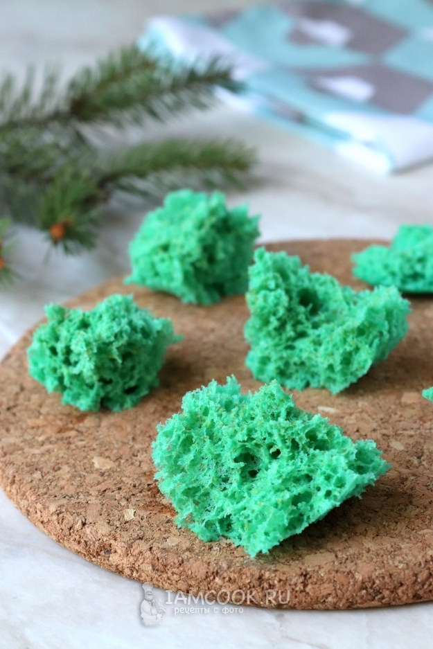Выпечку разорвать руками на произвольные кусочки, чтобы получился бисквитный мох. Вот и всё, съедобный декор для украшения десертов готов.