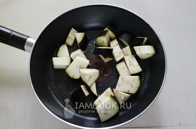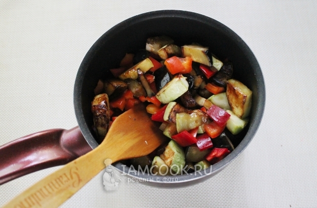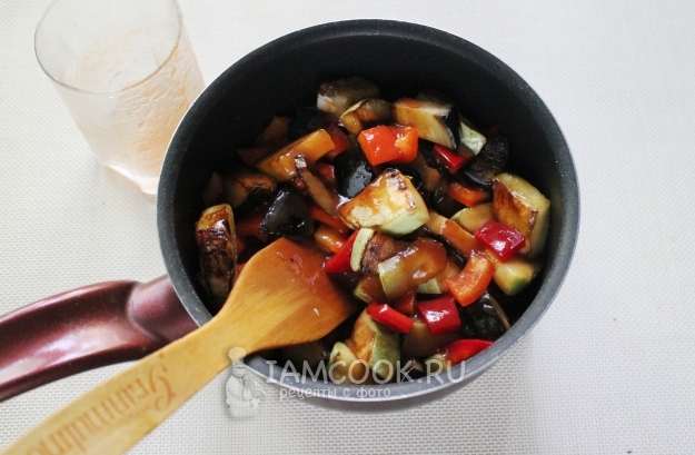 На разогретой сковороде с маслом быстро обжарьте овощи порциями, сначала баклажан.