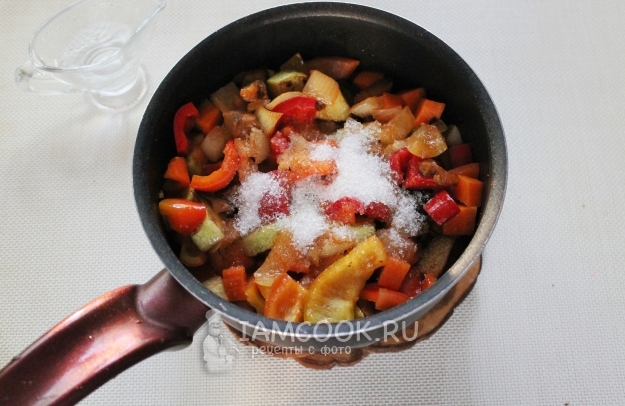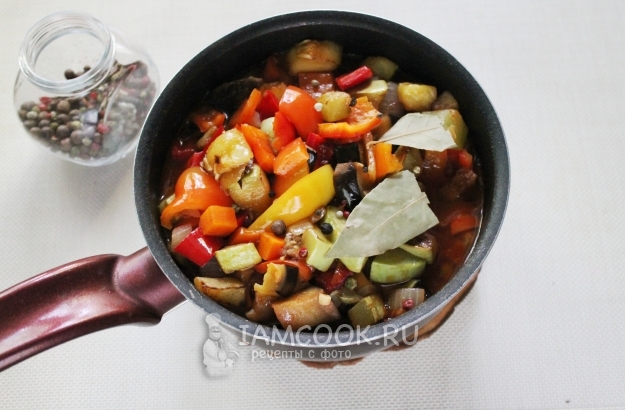 Добавьте перец и лавровый лист, тушите все вместе минут 15. Овощи должны сохранить целостность, но при этом быть готовыми.