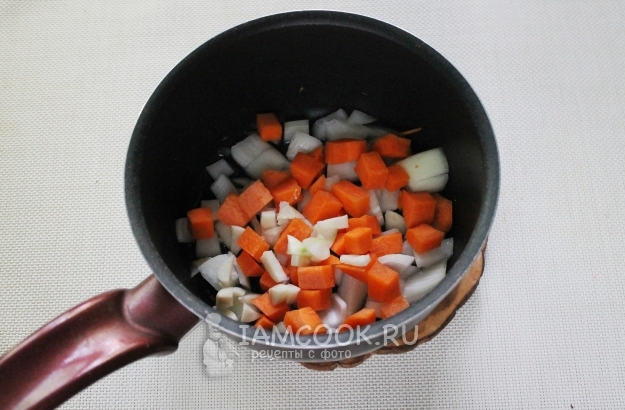 Добавьте морковь и чеснок. Продолжите легкую обжарку.