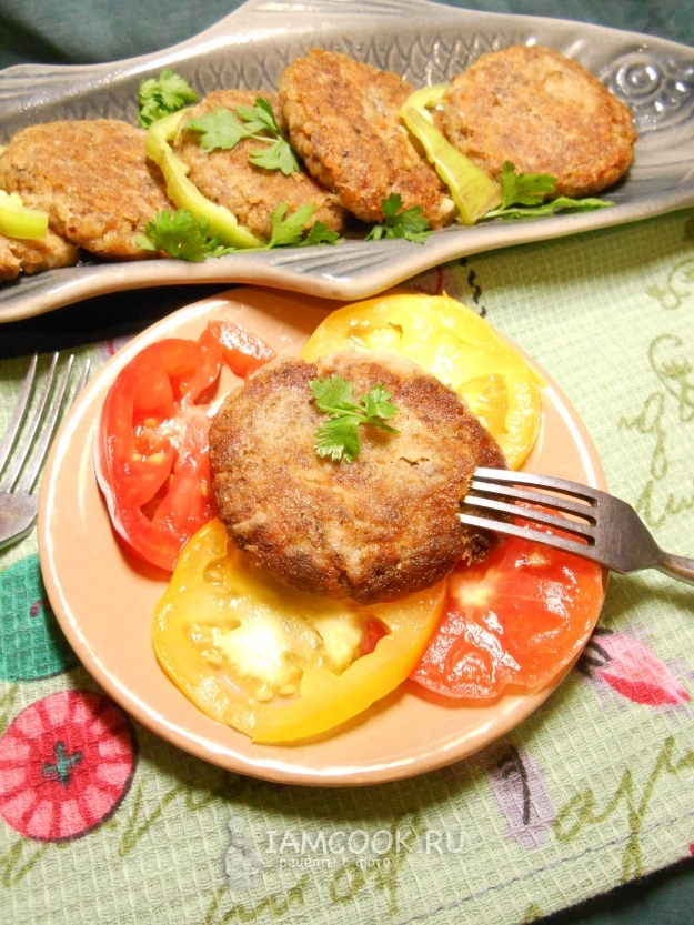 Котлетки пышные, сочные. Хорошо подавать их с салатом из свежих овощей. Моя семья любит в качестве гарнира к этому блюду рассыпчатую гречневую кашу.