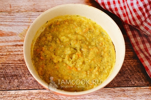 Можно перетереть до однородной массы. Я же измельчила так, чтобы чечевица перетерлась полностью, а морковка осталась кусочками.