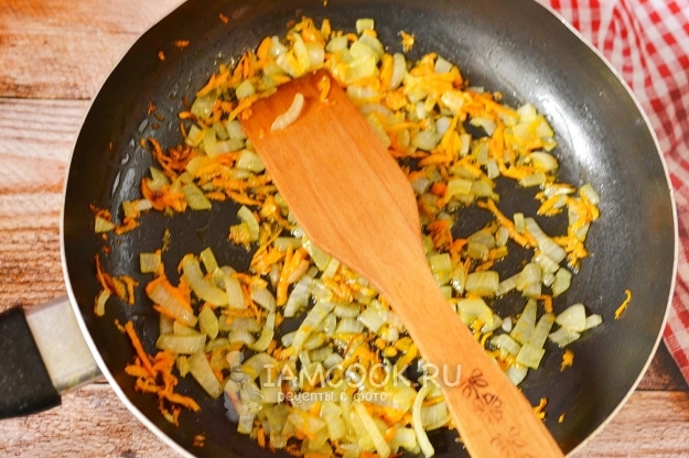Поджарим лук и морковь на подсолнечном масле (используем половину).