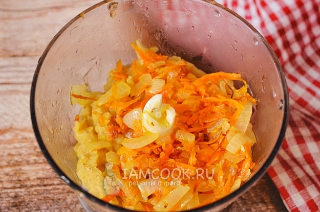 Чечевицу и пассеровку измельчим в блендере или же пропустим через мясорубку.