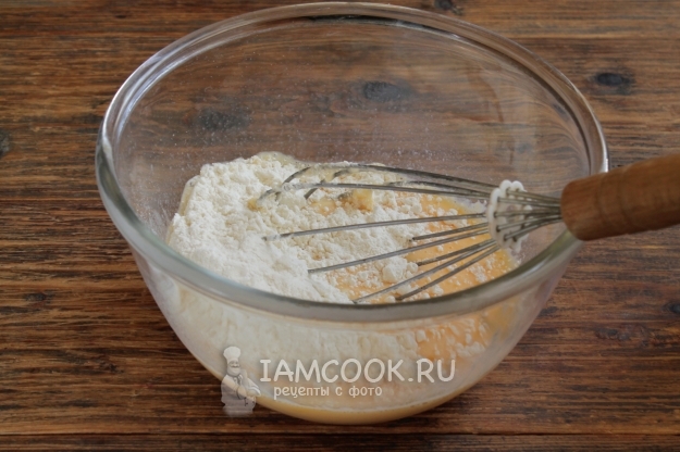Добавляем муку и замешиваем однородное блинное тесто.
