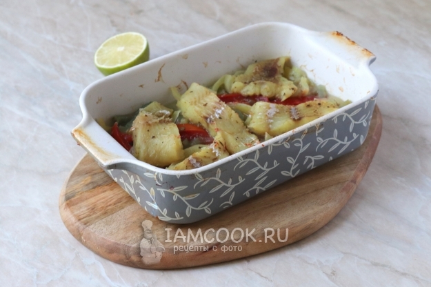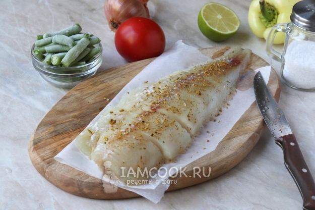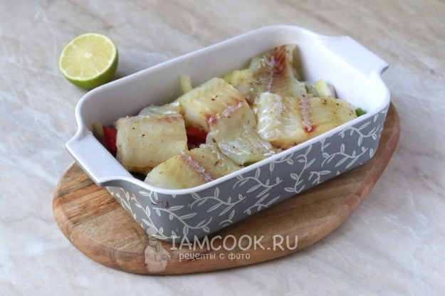 Для запекания филе минтая с овощами в духовке подготовить продукты по списку к рецепту.