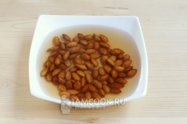 Вскипятим воду в чайнике, после нальем ее в любую емкость, затем всыплем туда миндаль. Он должен быть полностью покрыт водой. Оставляем его на две минуты в этой горячей воде.