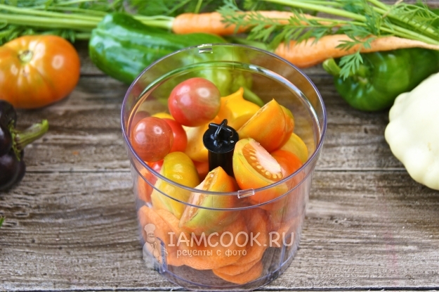 Вымоем овощи, морковь очистим и нарежем на кружочки, сложим в чашу блендера.