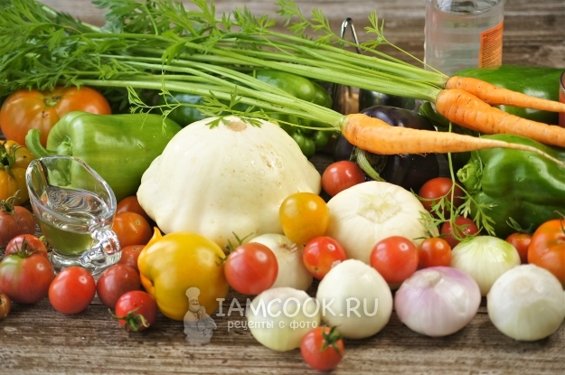 Итак, подготовим все необходимые продукты для приготовления лечо из патиссонов на зиму и приступим.