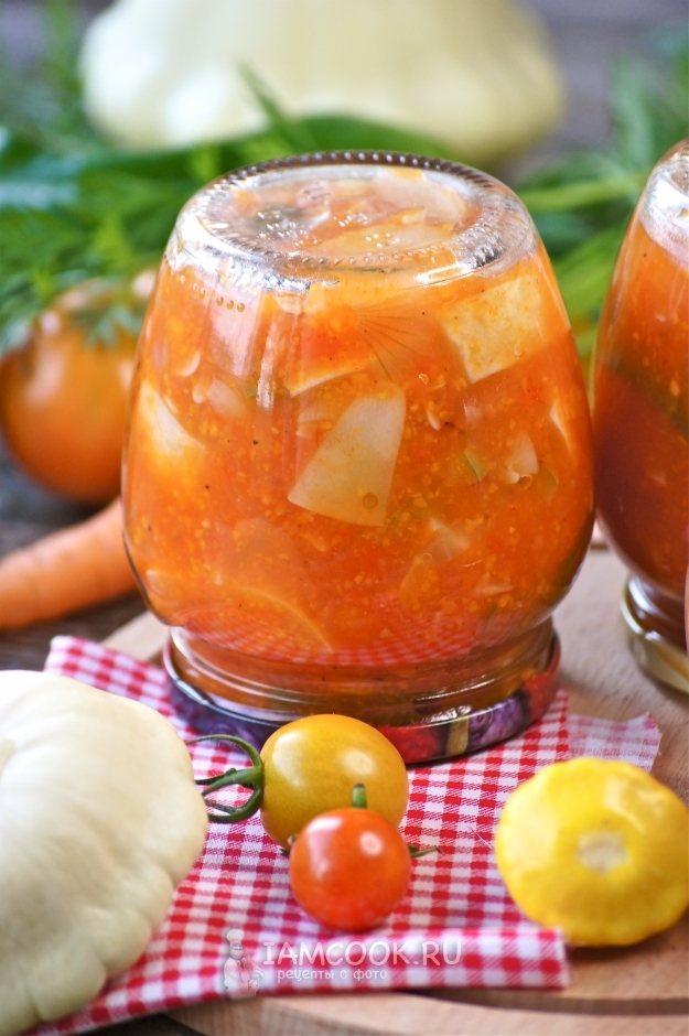 Лечо из патиссонов на зиму готово.