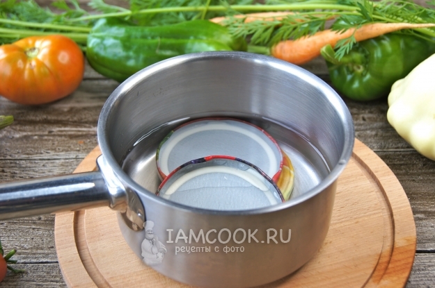 Крышки кладем в сотейник, заливаем водой и кипятим минуты 3.