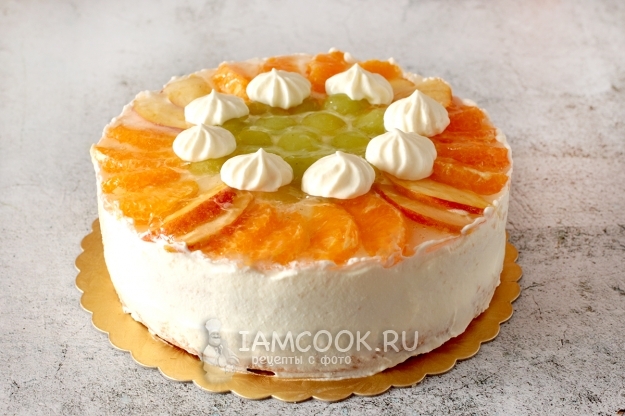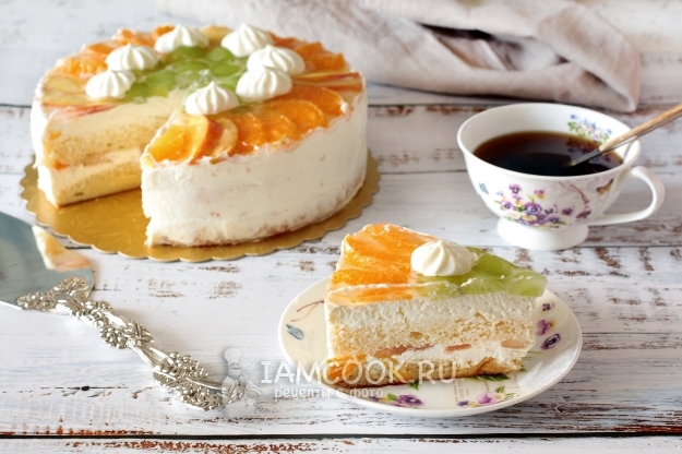 Фруктовый торт со сливками готов. Приятного чаепития!