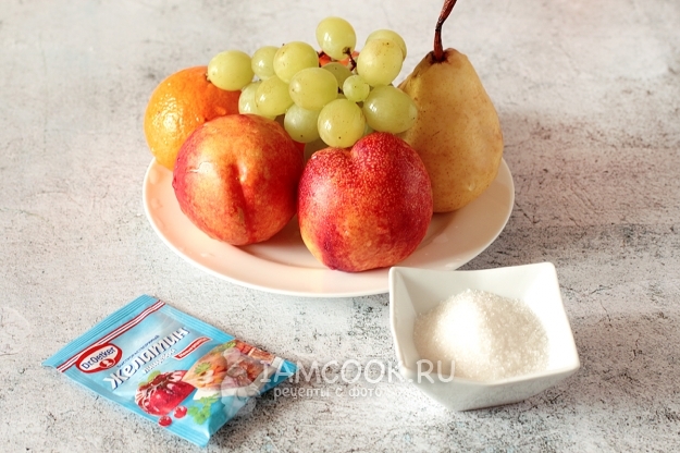 Для наполнения и украшения возьмите фрукты, желатин и сахар.