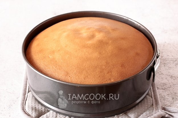 Готовый бисквит при нажатии пальцем пружинит и не проваливается, а зубочистка при протыкании выходит сухой. Остудите бисквит в форме в перевернутом виде, чтобы под формой проходил воздух. Это можно сделать на решетке или можно подставить под края формы обычные стаканы. Хорошо бы оставить готовый бисквит на несколько часов стабилизироваться, но если вы торопитесь, то просто хорошо и полностью его остудите.