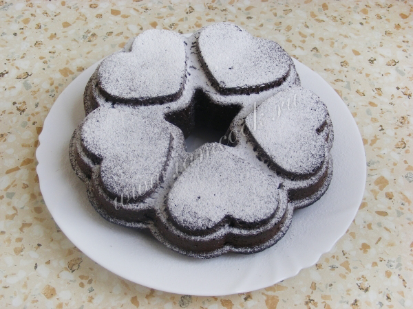 Готовый кекс посыпать сахарной пудрой. Но можно сделать глазурь или ганаш (так вкуснее).
