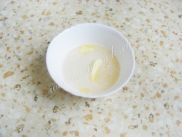 Влить его в яичную смесь. Взбить.