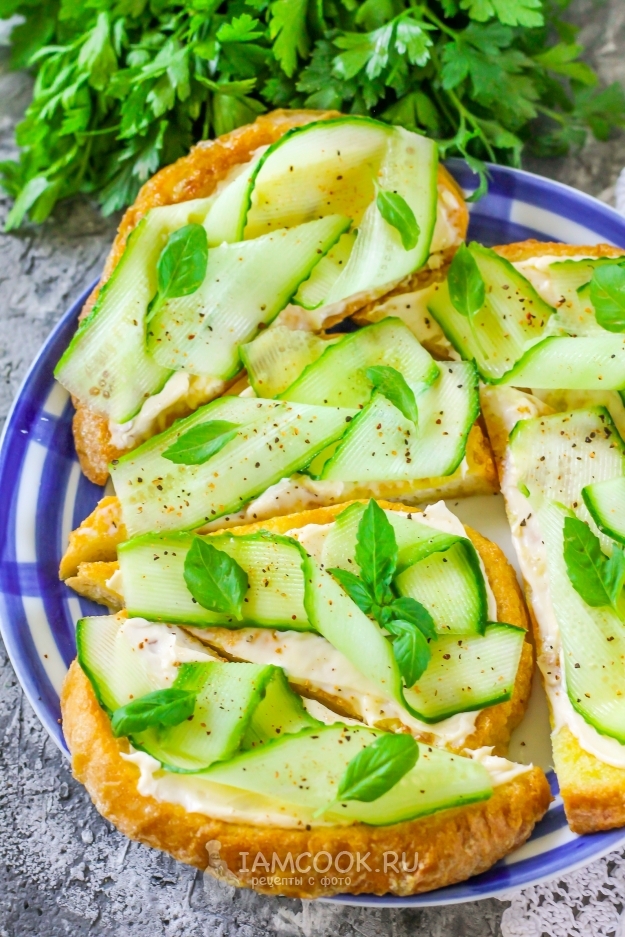 Сочные и румяные гренки с плавленым сыром и огурцом можно подать к завтраку, обеду или ужину, взять с собой в дорогу, в поездку, на пикник. Блюдо универсальное и очень быстро готовится, поэтому вам потребуется всего лишь 10-15 минут для его создания. Главное - дать горячим гренкам остыть перед намазыванием на них сыра, иначе он не будет на них держаться. Вкус сыра вы вольны подбирать по желанию: грибной, с зеленью, с паприкой, с беконом и т.д. А вот огурцы перед нарезкой обязательно пробуйте на вкус, чтобы вам не попались горькие овощи, которые испортят собой всё блюдо.