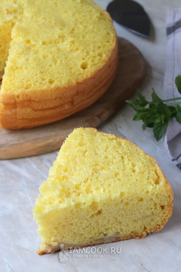После чего шарлотку с персиками порезать на порционные кусочки и можно подавать на стол.