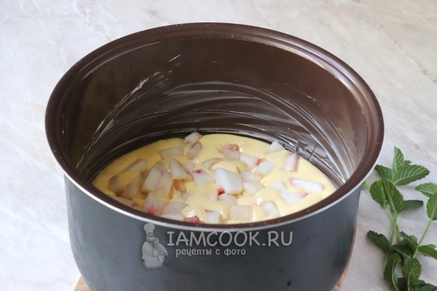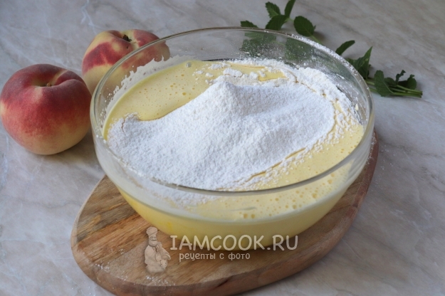 Закрыть крышку мультиварки и выбрать режим "Выпечка". Готовить шарлотку с персиками в мультиварке 60 минут. Во время выпекания крышку открывать нельзя, иначе тесто осядет.