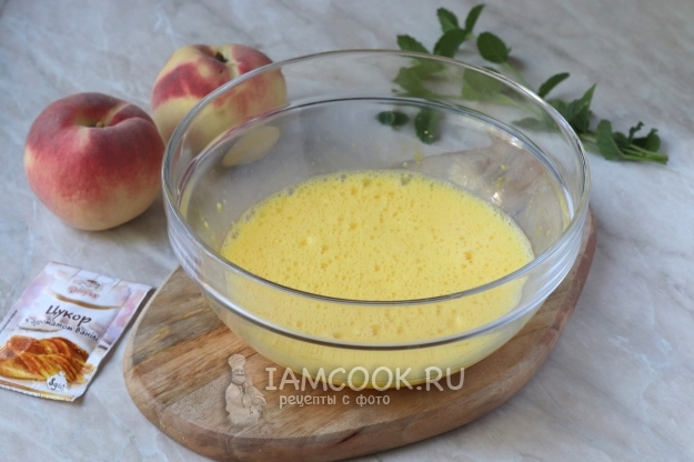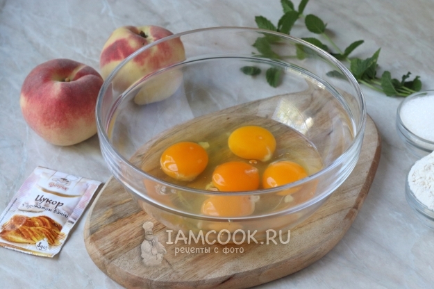 Продукты для приготовления шарлотки с персиками в мультиварке подготовить по списку к рецепту.