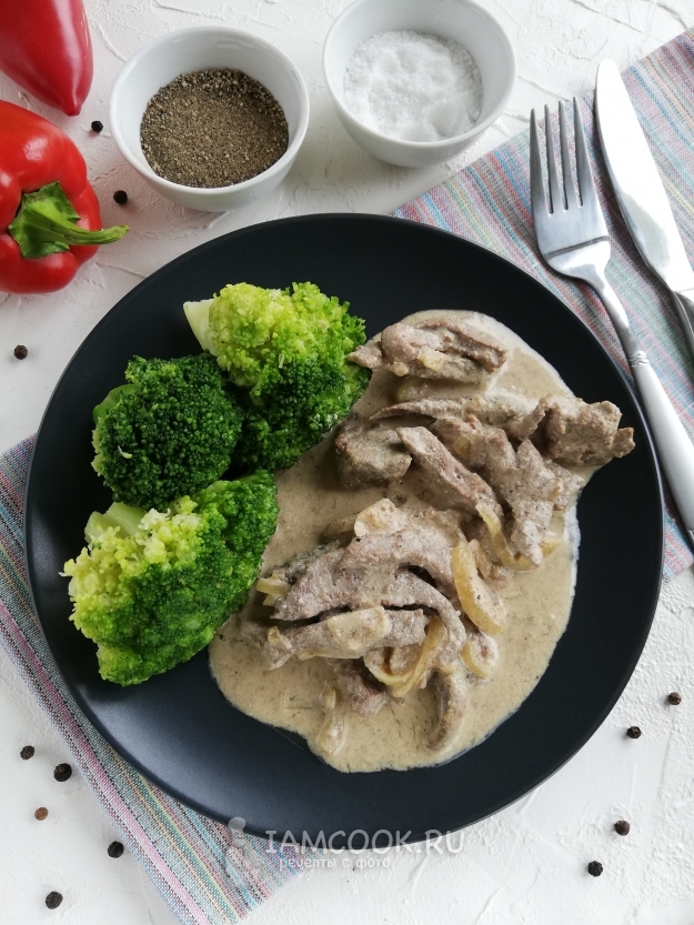 Свиная печень в сметане готова! Подавайте её с вашим любимым гарниром и про салатик не забывайте)))