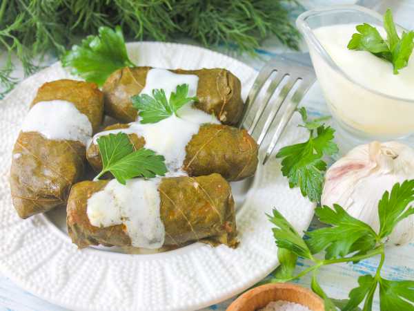 Ароматное блюдо, которое вы можете подать не только в будни, но и на праздничный стол - долма из баранины в виноградных листьях.