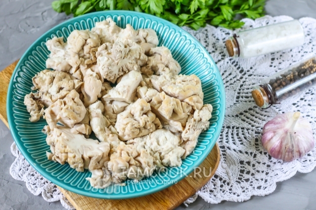 Отваренные мозги извлеките из воды и нарежьте на порционные части.