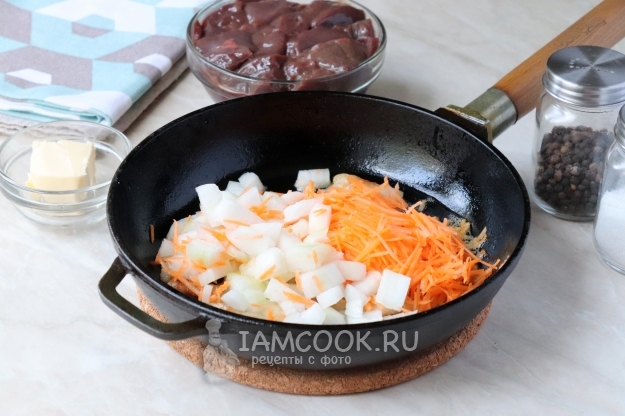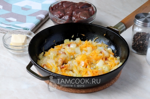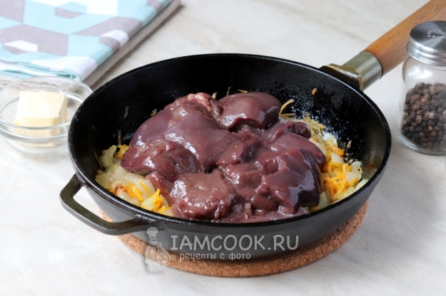 После чего добавить нарезанную средними кусочками свиную печень.