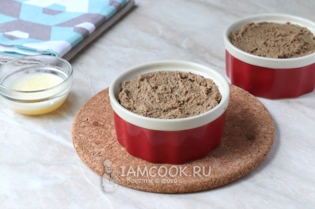 Чтобы паштет получился более вкусным и легко намазывался на хлебушек, в его состав входит не только печень, но и свиное сало с овощами.
