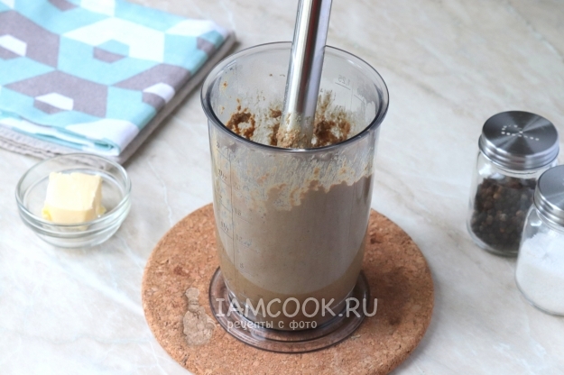 Переложить содержимое сковороды в чашу блендера и измельчить до однородного состояния. По надобности добавить ещё специй.