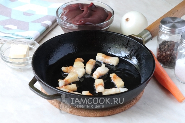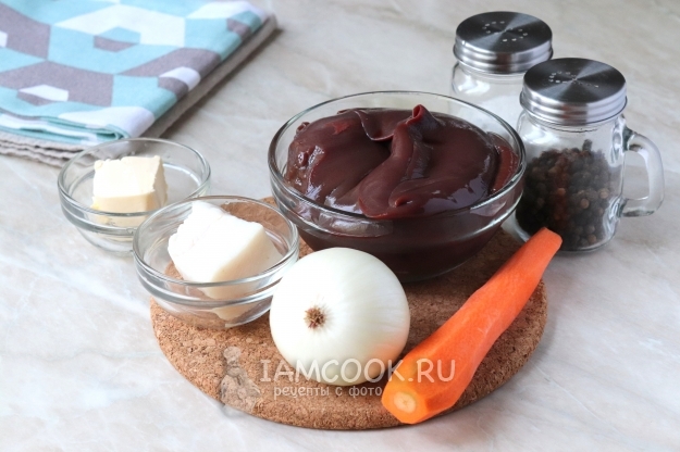 Для приготовления паштета из свиной печени с салом подготовьте продукты по списку к рецепту.