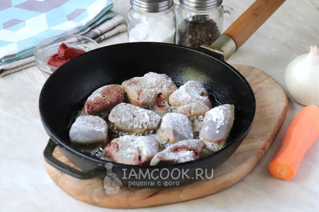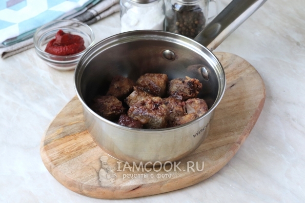 После чего переложить обжаренную печень в сотейник или небольшую кастрюлю.