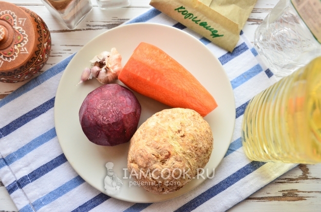 Корневой сельдерей нужно почистить, натереть и переложить в миску.