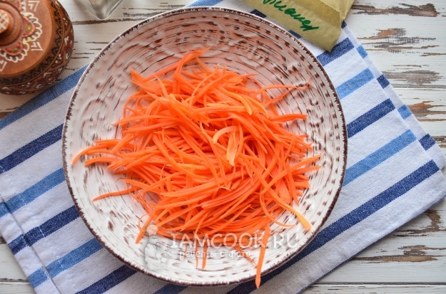 Очищенную морковь нужно натереть на специальной терке и сложить в миску.