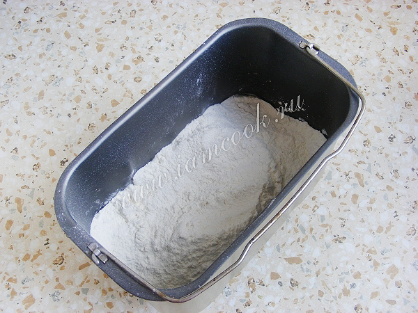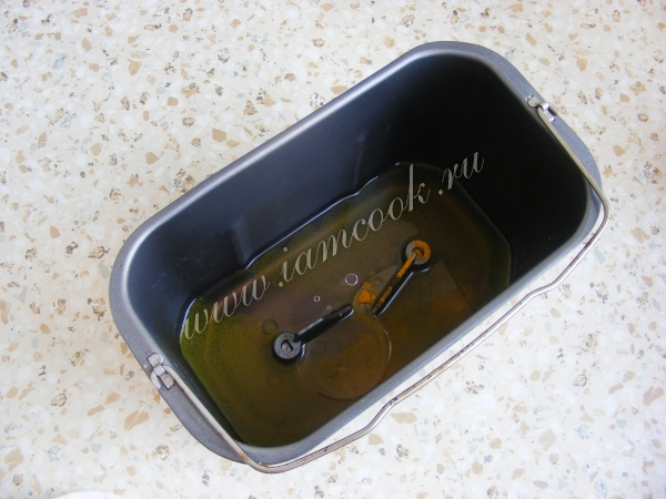 Порядок закладки продуктов зависит от типа хлебопечки. У меня сперва жидкие ингредиенты, такие как вода, масло, вино (лучше белое), соль и сахар.