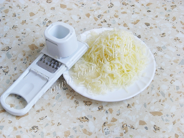 Через 18 минут после сигнала добавить сыр, тертый на мелкой терке, и чеснок (через пресс или на терке).