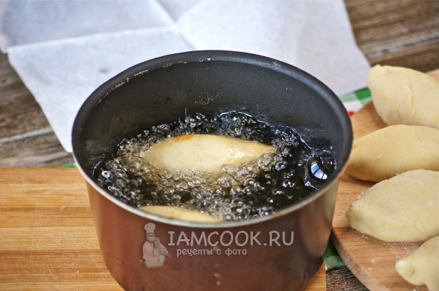 Разогрейте масло на режиме выше среднего, опустите кусочек теста - если оно всплыло, фритюр готов, можно жарить. Опустите пирожки в кипящее масло и жарьте до румяного цвета, пирожки должны полностью плавать.