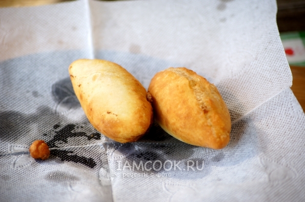 Обжаренные во фритюре пирожки с капустой выложите на бумажную салфетку или полотенце, чтобы стекло лишнее масло.